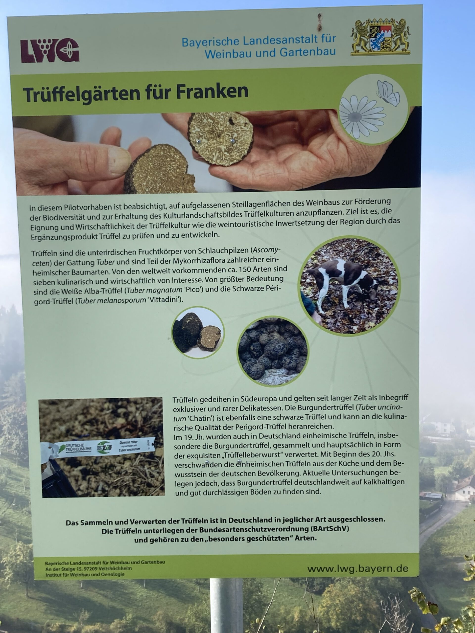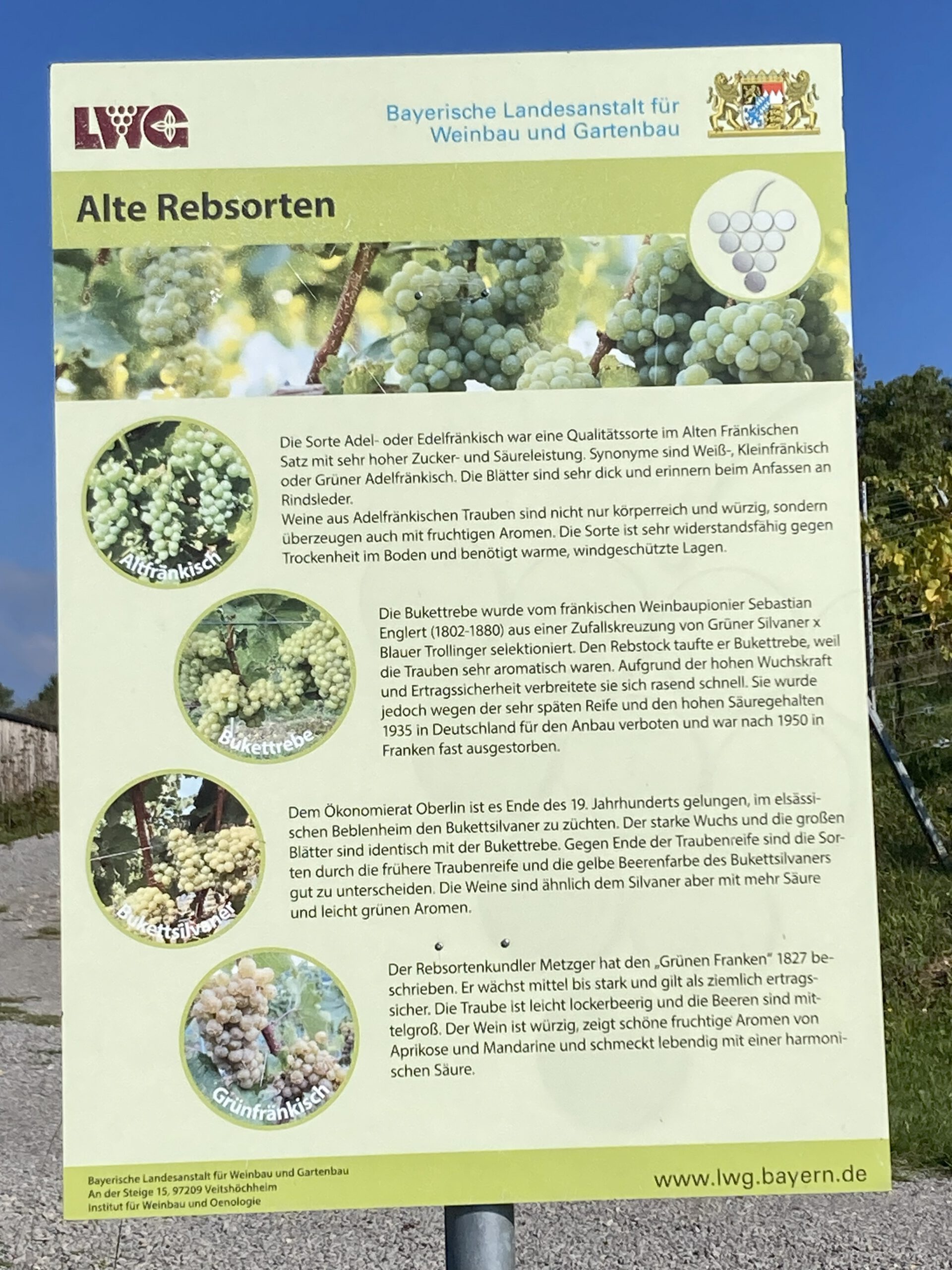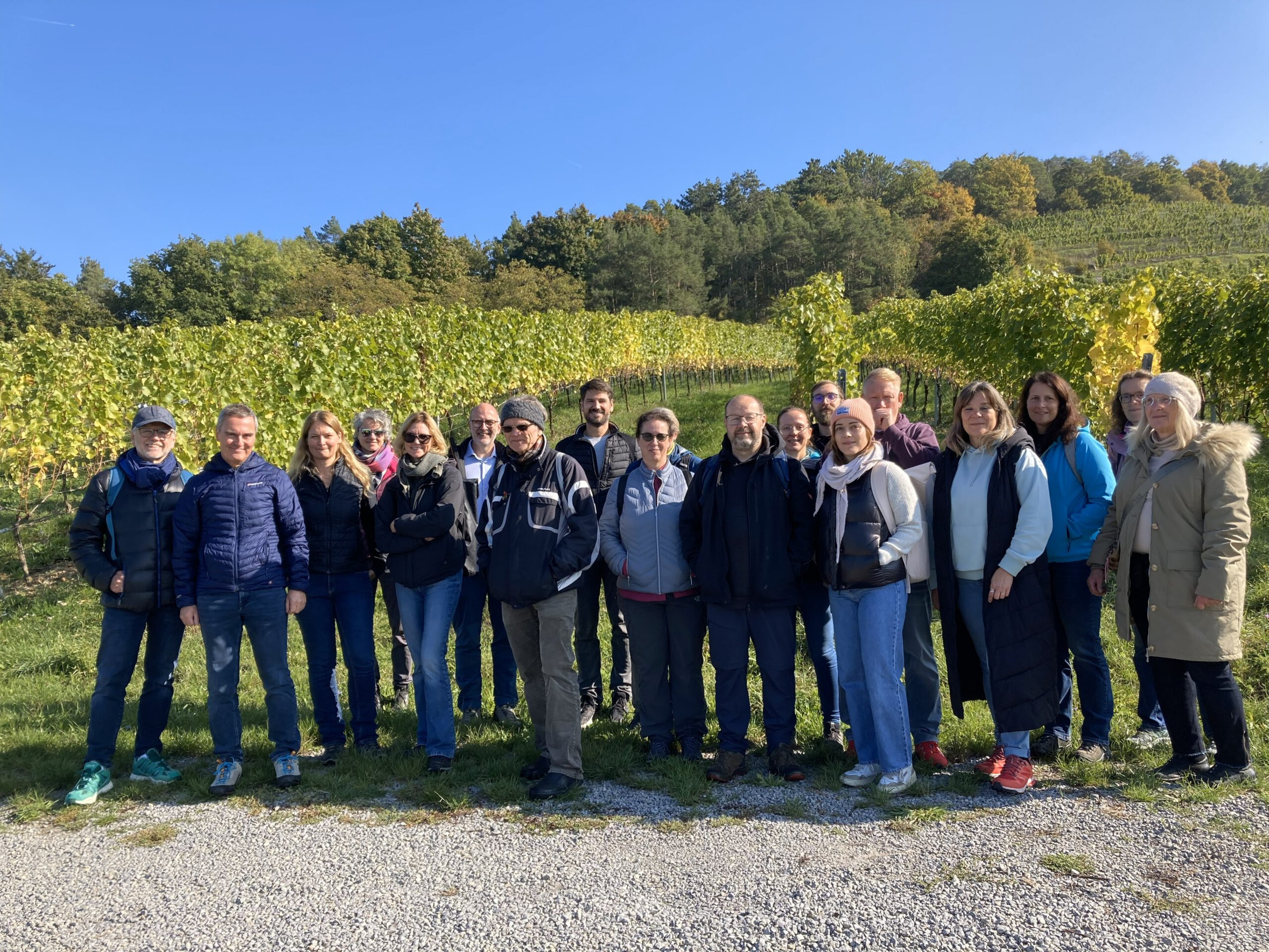 Die Herbstexkursion 2025 führte am 2. Oktober nach Würzburg. Programmpunkte waren u.a. die Besichtigung der Landesanstalt für Weinbau und Gartenbau (LWG) in Veitshöchheim, ein gemeinsames Mittagessen in der LWG, eine Fahrt zur Mainschleife (Terroir F, Vogelsburg bei Escherndorf), eine geführte Wanderung durch die Weinberge mit Besuch eines Weinbaubetriebes mit Weinprobe.